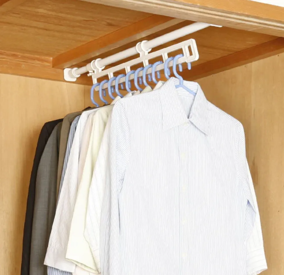 ラックの軸を伸ばしてクローゼットのハンガーポールの下に設置すれば、簡単に2段目を作ることができます。